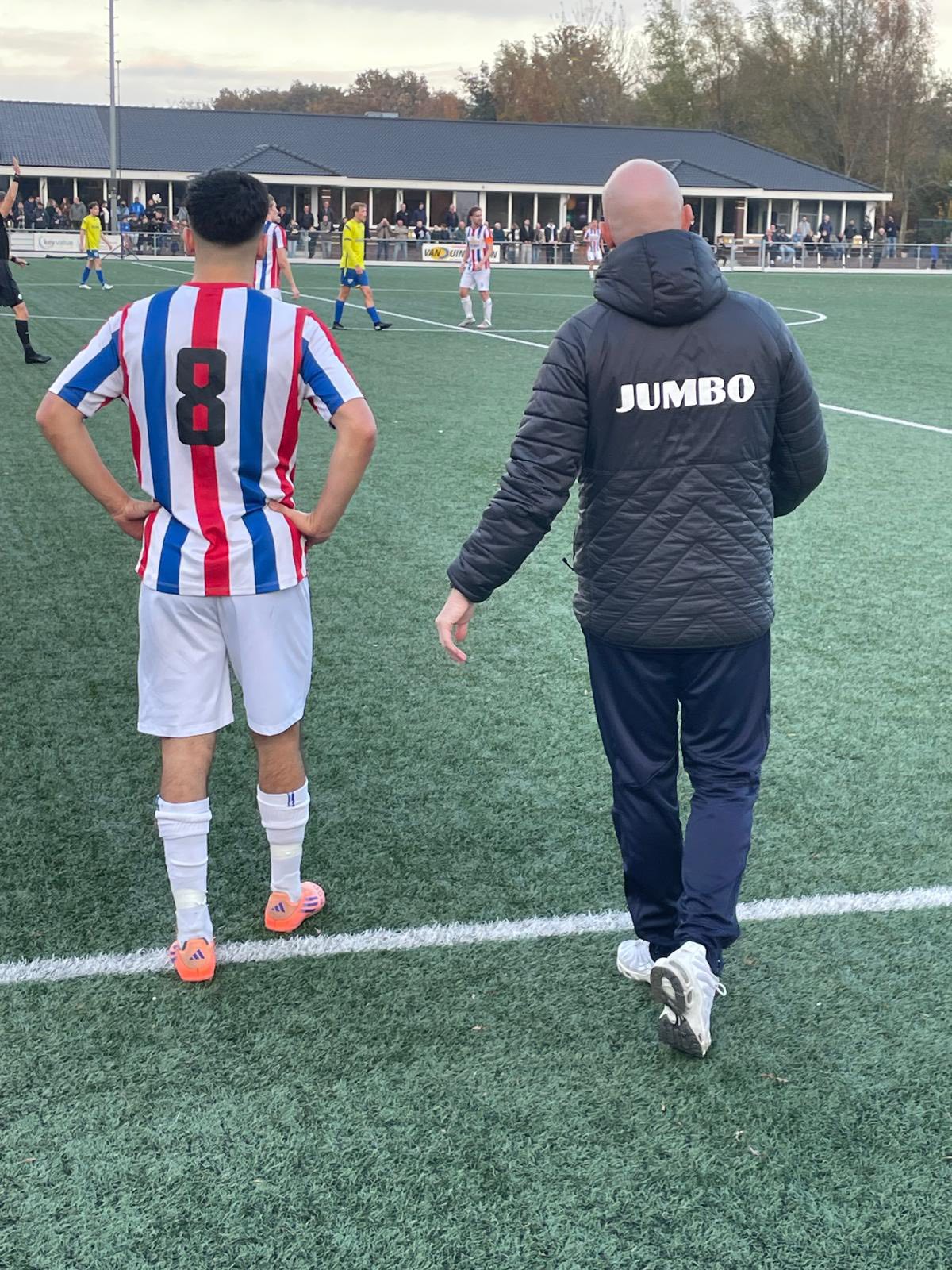Finn wordt vaak gezocht en ook via de snelheid van Nasr komen we aan aanvallen toe. Iedereen knokt voor elke meter en wedstrijd volledig in balans. Corner Van Hooglanderveen maar Patrick zit er goed bij en stompt de bal weg. Harde voorzet van Mick, Max kopt door maar schot van Finn is niet hard genoeg.